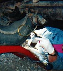 ![]() Be VERY carful during this step!! Brake fluid will strip paint right off the body of your car. When you have the master cylinder empty, I use a clean rag (I use old diapers, if you have no kids, the diaper services sell old ones as rags) to clean it out. Then I re-filled it with new fluid. |