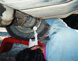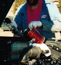 Here you can see the dirty stuff filling the catch cup. The tubing that comes with the vacuum pump is clear so you can see when clean fluid starts comming out of the bleeder vent. | ![]() |
