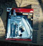 I pump the pump a few times before I open the bleeder so vacuum is present before the valve is open. That way you are drawing fluid out of the system and not allowing air into the system. You also need to keep the catch cup upright so the fluid stays in the cup and doesn´t get past the cup into the pump. Depending on how big you front calipers are, you may need to empty the catch cup before you get clean fluid out of the vent. You also need to keep an eye on the fluid in the master cylinder, if you suck it all out and get air in the system, you will have to start all over again. So keep an eye on the level, keep it full. | ![]() |
