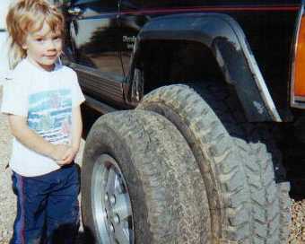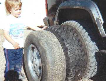 The difference between stock and 33's. And Colton, who had to be in these pictures. :-) |