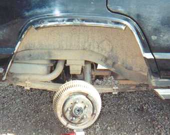 I reattached the stock rear flare. I had to cut the flare and mount part of it to the door¸ if I had not the flare would have prevented the rear boor from opening. After this picture was taken I got a second set of stock flares and I cut them to fill the gap you see here. |