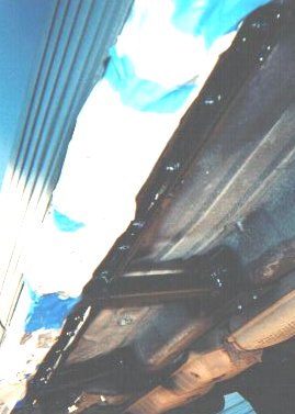 After the rails were in place I masked off the painted part so I coulsd spray the unseen part with the rubberized undercoating. |