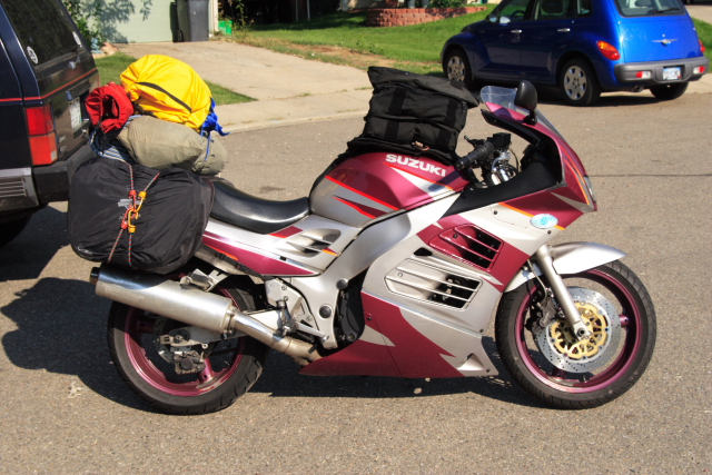 | So, here is Jed Clampett ready to leave on his epic journey. With the way I have the bike loaded down I was leaving for a month or something. | |