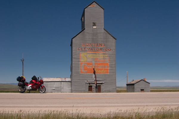 | Got a late start to the day, about 8:45. Just outside of Laurel GPS sent me on a dirt road again. This one was at least a good farm service road. About 17 miles, not too bad. Better that the last one. Nice scenery here in Montana. right after this shot I head between these ridges into a nice canyon. |