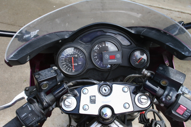 | I placed the controller on the tach. I can't read below 2000 RPMs, but I don't miss that. I like this location better than where they show it on the Pro-Oiler site. I think it is easier to reach in case you have to make a change on the fly. | |