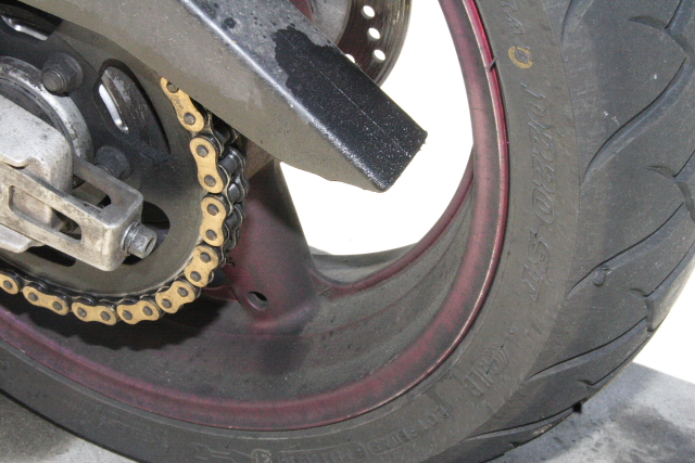 This is how thw wheel looked before. Very dusty, but not any real oil on it to speak of, not like the overspray from aerosol chain lubes.