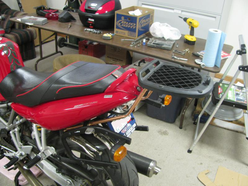 I tried to find a mount for the trunk. but Ducati does not make one any more, and neither does Givi.