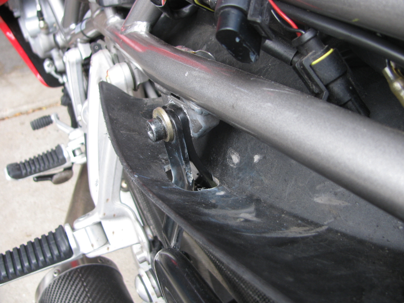 | I had to cut the under seat shield holes bigger so the trunk mount would fit at the same time as the mounts for the side bags. | |
