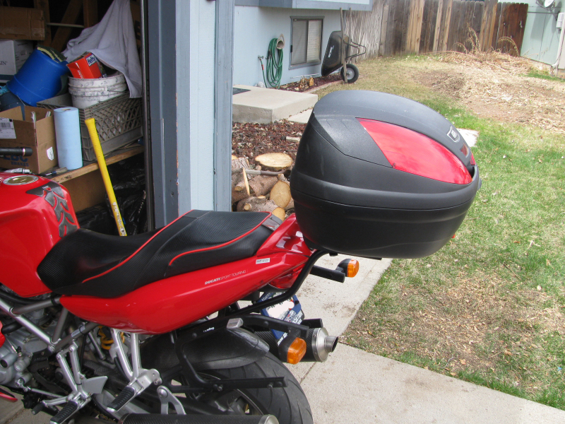 I bought my Ducati used in 2010. I had a trunk from my last bike that the person I sold the bike to did not want, so I kept it.