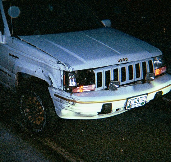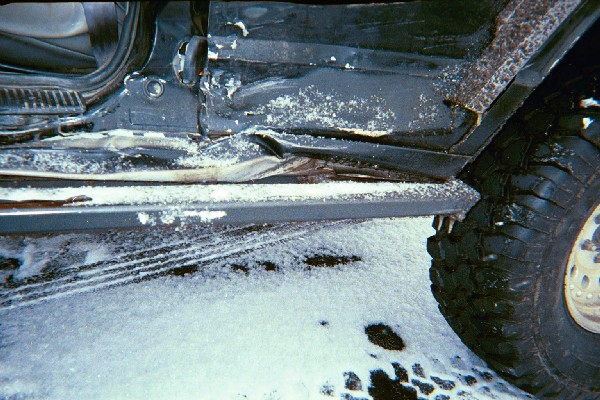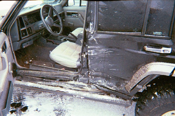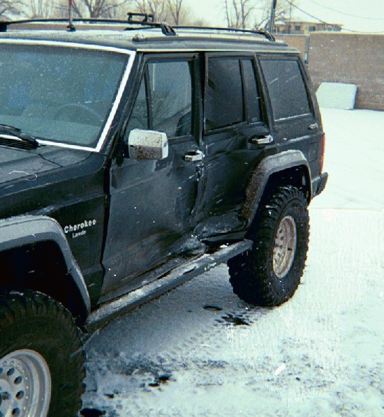 | I did avoid a head on collision, but as you can see, she still got me. If you look real close, you can see that the body metal started to tear where my rock rail monted to the body pinch seam. |